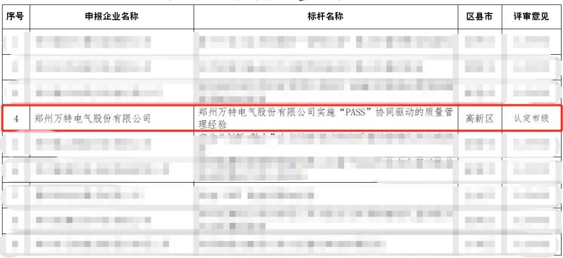 5月22日,郑州市工信局公示,认定我公司实施“PASS”协同驱动的质量管理经验2023年郑州市质量标杆企业,郑州市此次共认定20家企业,高新区仅有两家企业通过。