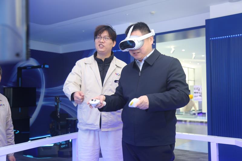 交流期间,学院一行走进万特电气展厅,沉浸式体验了高空坠落体感装置、电力安全VR体感装置、全向移动式电力巡视VR体验系统、多人动感电力巡线VR体验系统等核心产品。通过虚实结合的互动体验,直观感受VR技术与电力行业的深度融合,切实体会到数字化技术为电力安全培训、作业流程优化带来的革命性变化与独特价值。