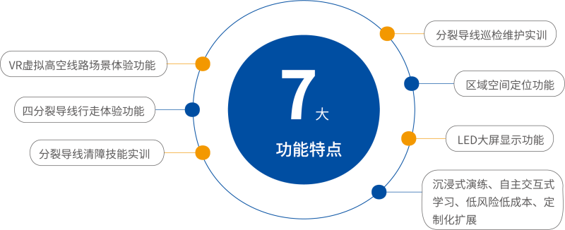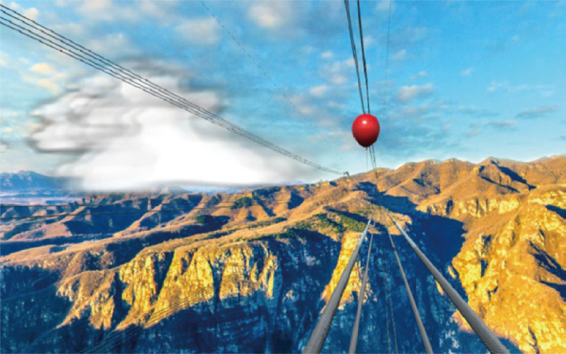 高空线路行走VR 实训系统是采用虚拟与现实结合的方式,在室内架设一段模拟的500kV四分裂线路,借助VR 虚拟现实技术,营造高山峡谷间分裂线路的虚拟场景,真实感受分裂导线行走过程及坠落风险后果,训练作 业安全防护技能,锻炼高空作业心理素质。