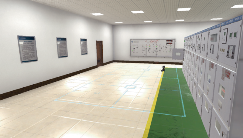 本项目在虚拟场景中搭建10kV典型配电室场景,系统采用10kV双电源进线方式,包括进线柜、计量柜、PT 柜、出 线柜、联络柜、模拟屏等,模拟10kV开关柜日常运行方式,进行开关柜运行转检修、检修转运行作业过程中典型